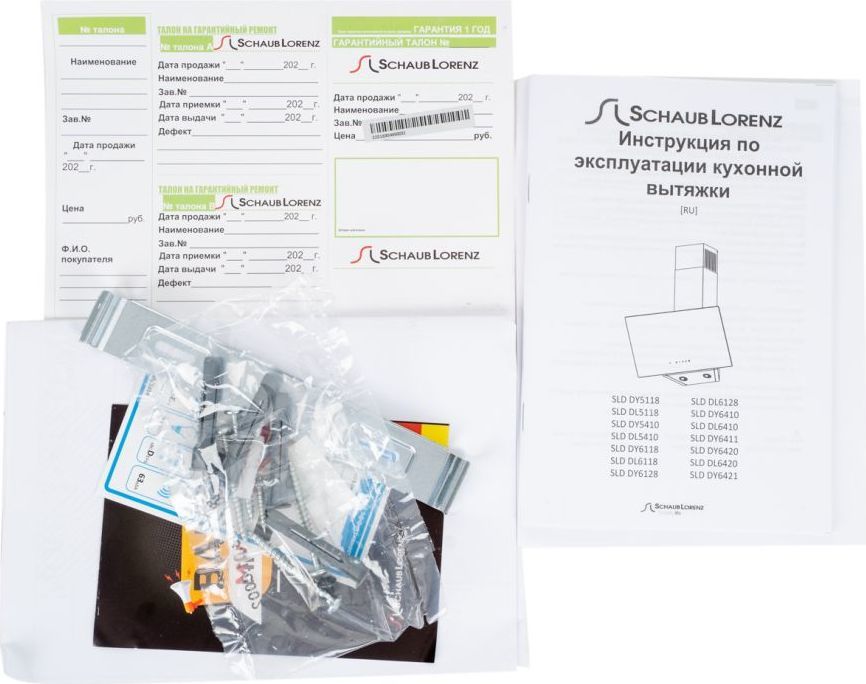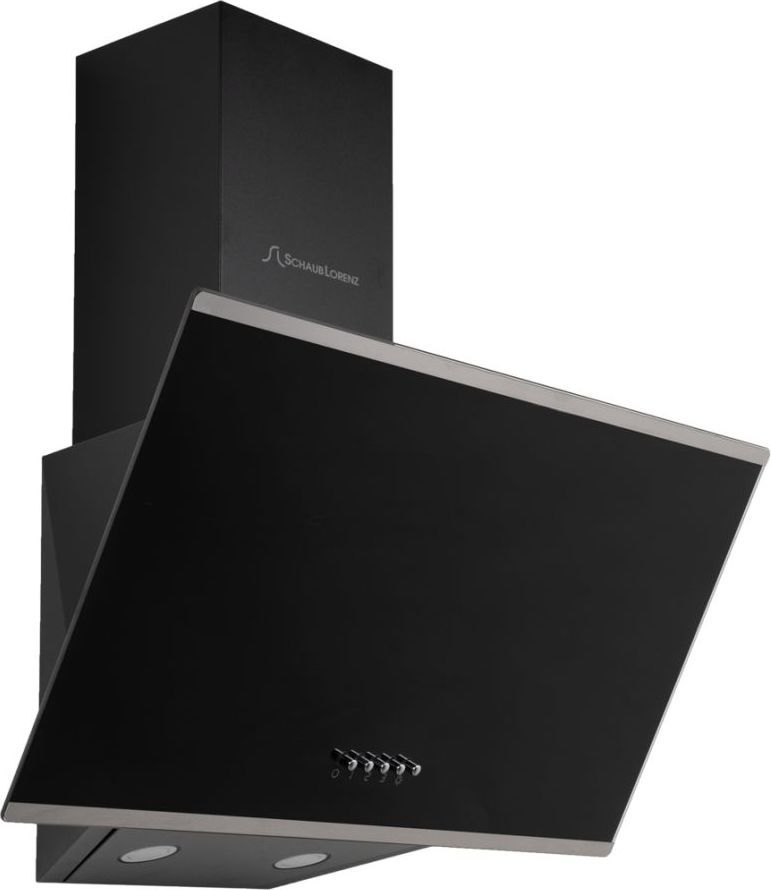 - Наклонная вытяжка Schaub Lorenz SLD DY6411 изготовлена из черного стекла и нержавеющей стали с двумя декоративными алюминиевыми вставками, особый дизайн гармонично впишется в любой интерьер.