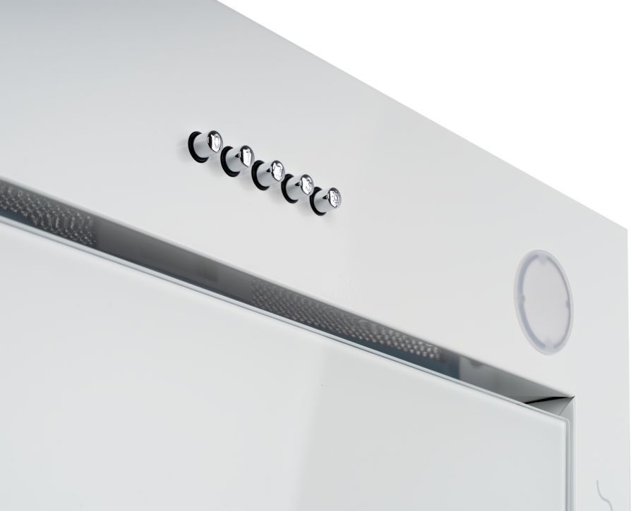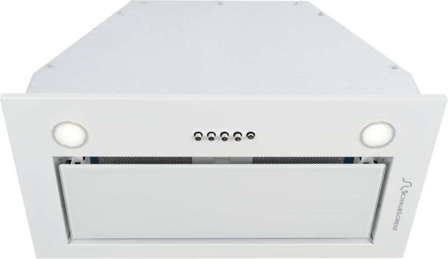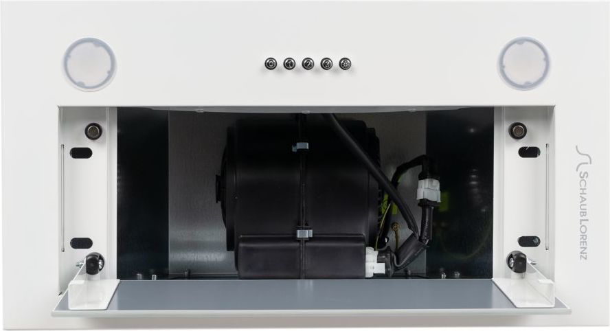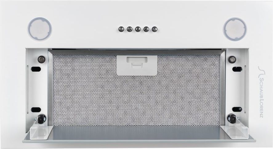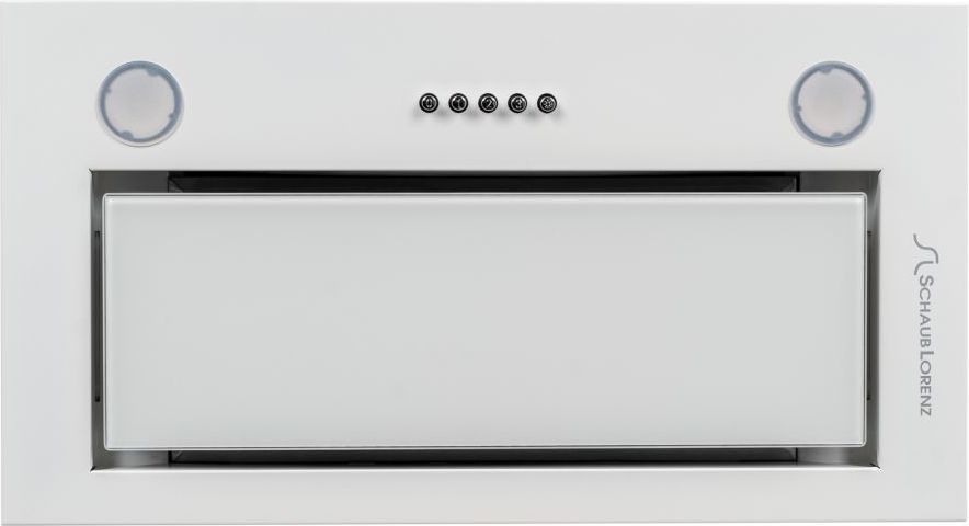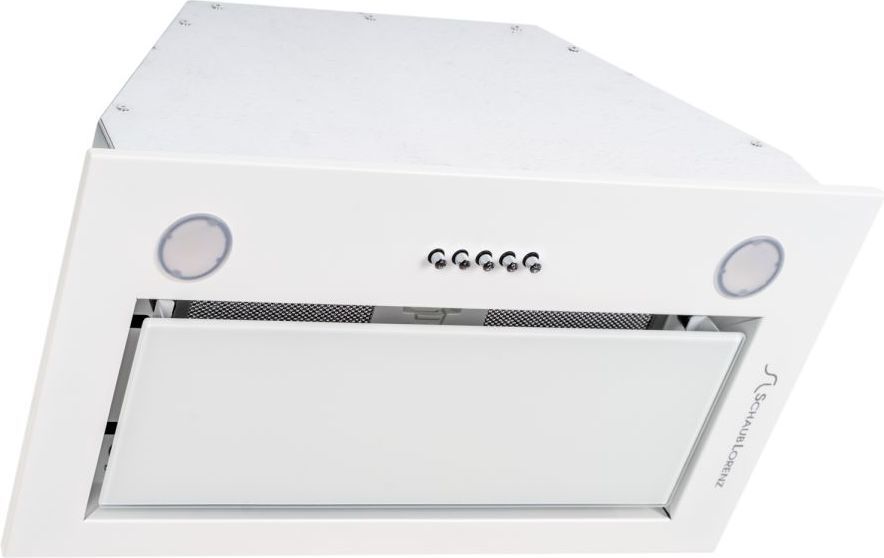 - Встраиваемая вытяжка Schaub Lorenz SLD EL5210 белого цвета с вставкой из стекла изготовлена из нержавеющей стали.