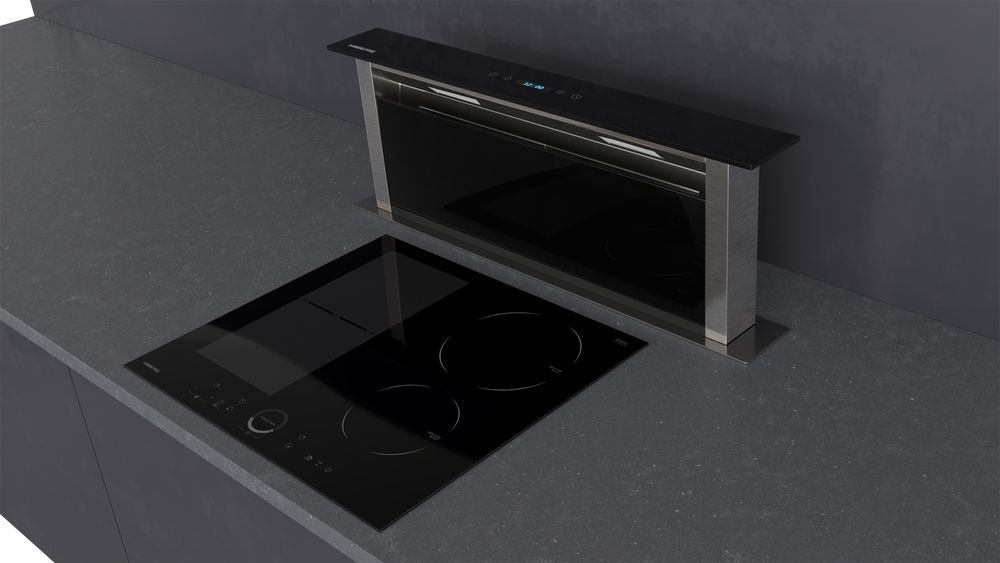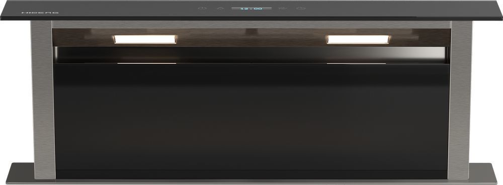 - Встраиваемая в столешницу вытяжка HIBERG VTMF 90100 B – это современное инновационное решение для создания комфортных условий на вашей кухне. Вытяжка имеет 9 уровней мощности и работает только в выдвинутом положении, при выключении обратно убирается в стол. В закрытом виде – это элегантная черная стеклянная панель на поверхности стола, которая подходит для больших современных кухонь с островом или кухонного гарнитура без верхних шкафов.