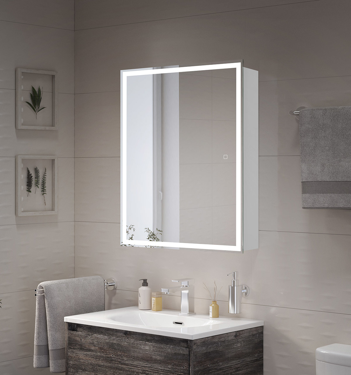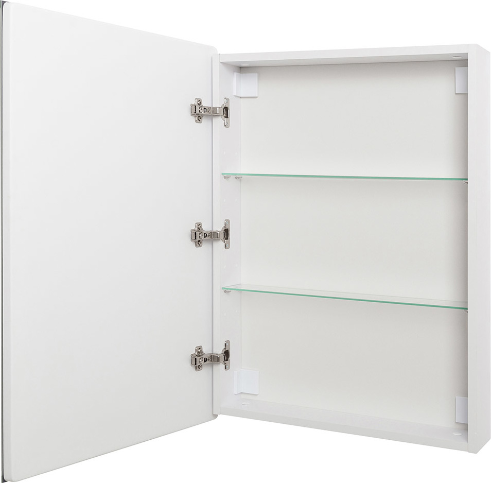 Зеркало-шкаф BelBagno SPC-GRT-600/800-1A-LED-TCH 60 см с одной распашной дверью, с двумя стеклянными полками, со встроенной подсветкой и сенсорным выключателем, цвет белый.