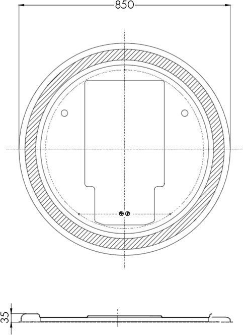 - Зеркало крепится на подложку из влагостойкого ЛДСП и закрыто пластиковой крышкой, стык крышки и зеркального полотна дополнительно защищен резиновым уплотнителем, исключающим попадание пыли и влаги