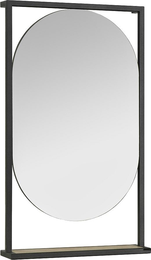 Зеркало Акватон Лофт Фабрик 50 см 1A242502LTDY0, черные металлические профили в форме прямоугольника обрамляют овальное зеркало, под которым находится полочка, цвет - дуб кантри.
