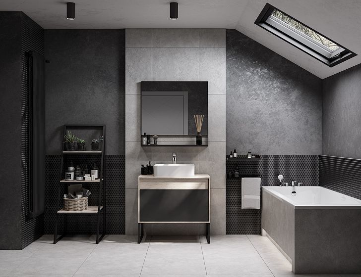 Зеркало Акватон Лофт Урбан 80 см 1A247902LQX50, обрамленное по периметру металлическим профилем и полочкой с ограничителем, который препятствует падению предметов, цвет - дуб орегон.