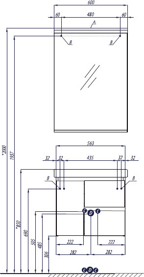 Зеркало Акватон Рене 60 см 1A222302NR010, с подсветкой и полочкой, цвет - белый глянец.
