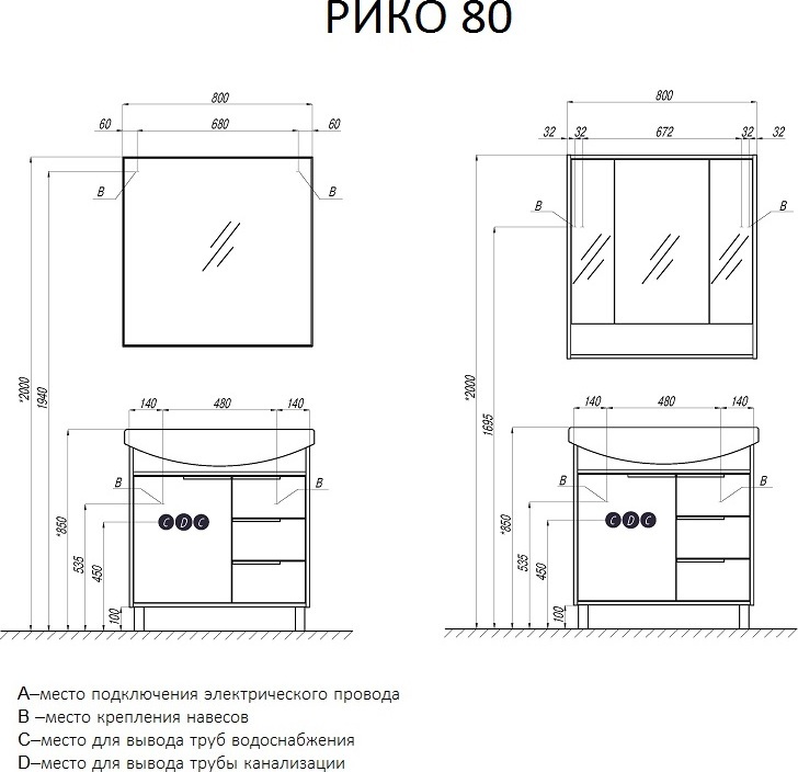 Зеркало Акватон Рико 80 см 1A216502RI010