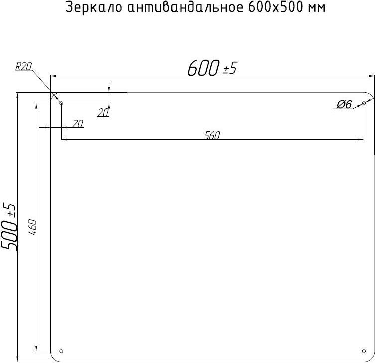 Зеркало антивандальное Тругор ЗА 60x50 см