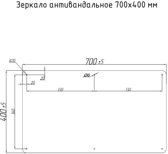 Зеркало антивандальное Тругор ЗА 70x40 см