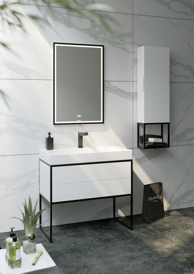 - По аналогии с тумбами зеркало предлагается в металлическом профиле