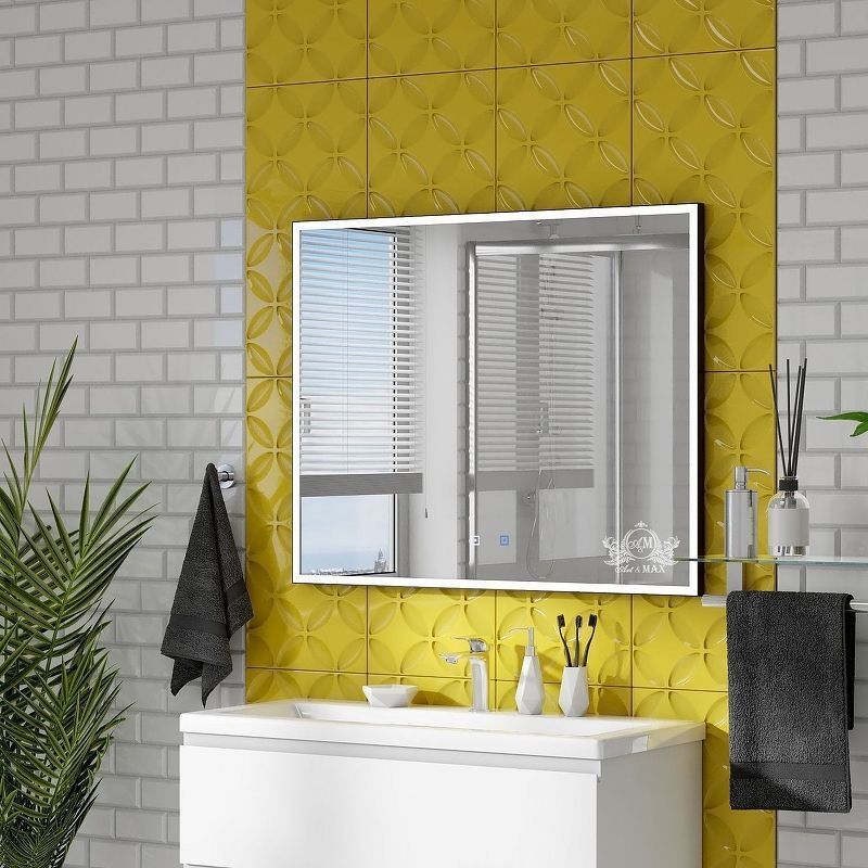 Зеркало Art&Max Arezzo Led 100 см AM-Are-1000-800-DS-FC-H-Nero, с подсветкой "теплого/холодного" типа с возможностью переключения, диммером, функцией антизапотевания и сенсорным выключателем. По периметру зеркала профиль из полированного алюминия, задняя часть корпуса закрыта.