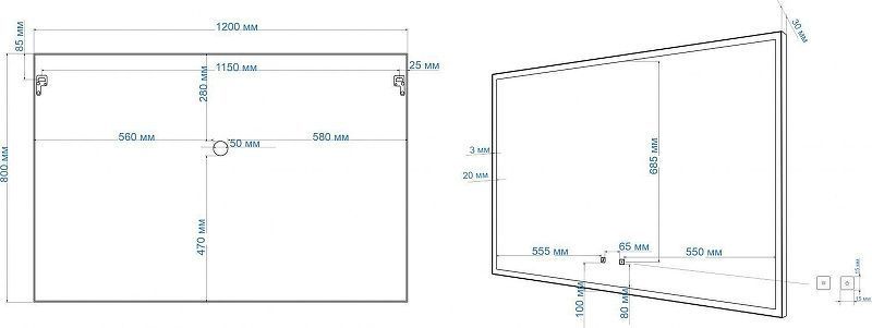 Зеркало Art&Max Arezzo Led 120 см AM-Are-1200-800-DS-FC-H-Nero, с подсветкой "теплого/холодного" типа с возможностью переключения, диммером, функцией антизапотевания и сенсорным выключателем. По периметру зеркала профиль из полированного алюминия, задняя часть корпуса закрыта.