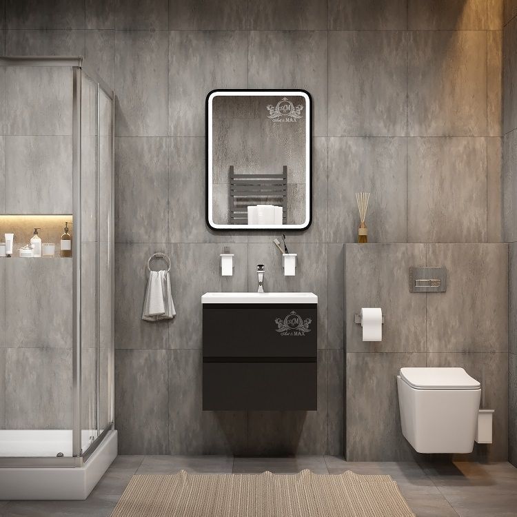 Зеркало Art&Max Genova Led 60 см AM-Gen-600-800-DS-F-H, черный матовый