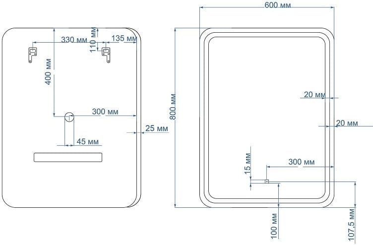 Зеркало Art&Max Genova 60 см AM-Gen-600-800-DS-F-H с Led-подсветкой, диммером, антизапотевателем и сенсорным выключателем.