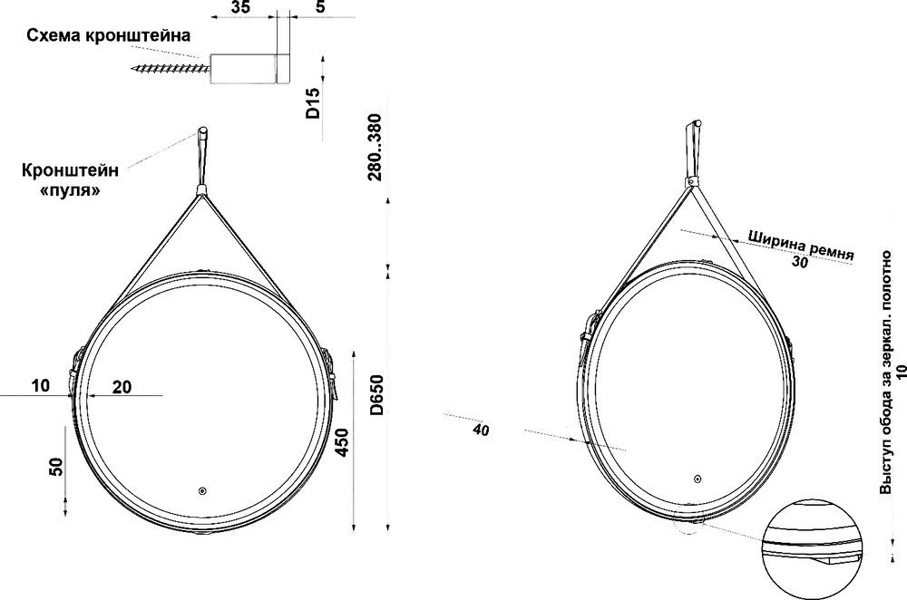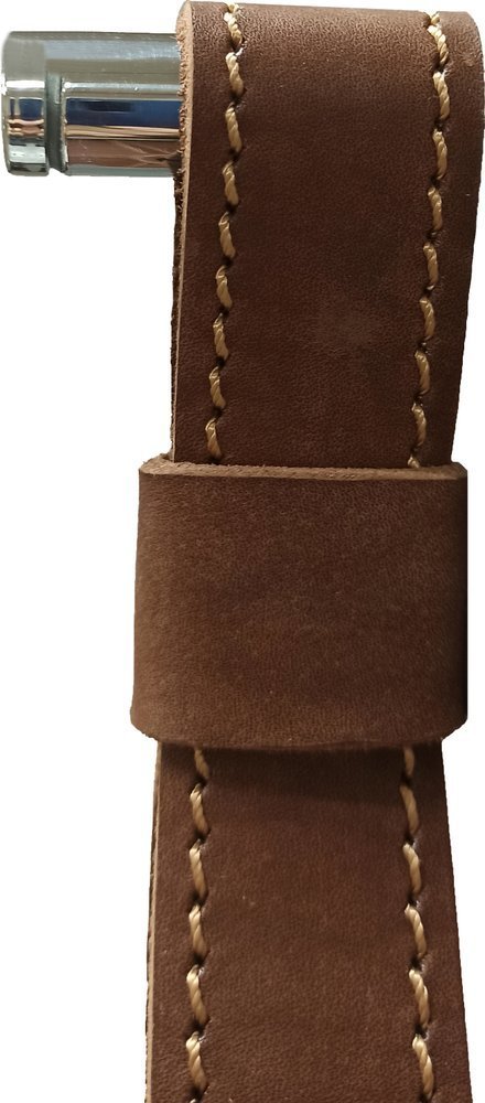 Зеркало Art&Max Milan Led 65 см AM-Mil-650-DS-F-Brown с подсветкой, диммером и сенсорным выключателем, ремень из натуральной кожи коричневого цвета.