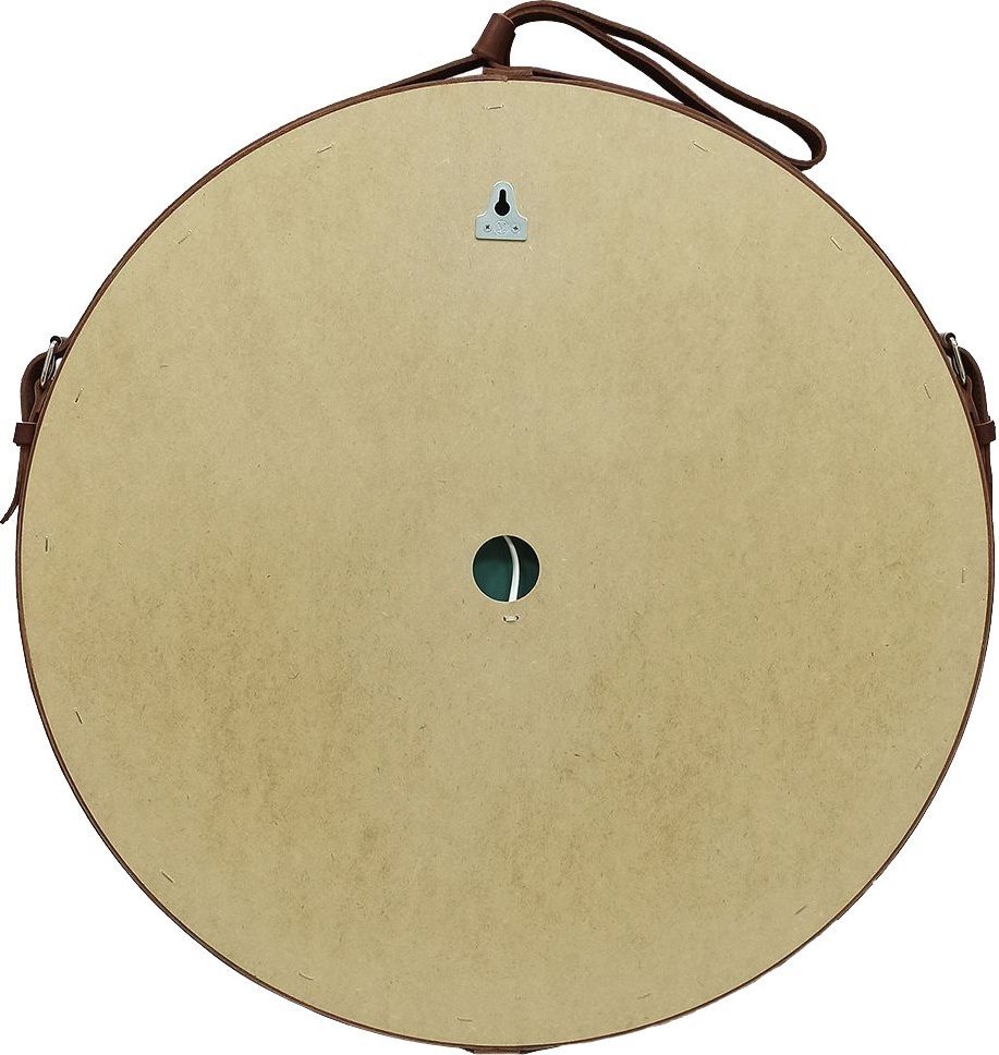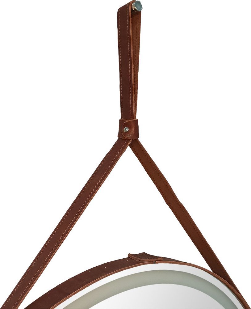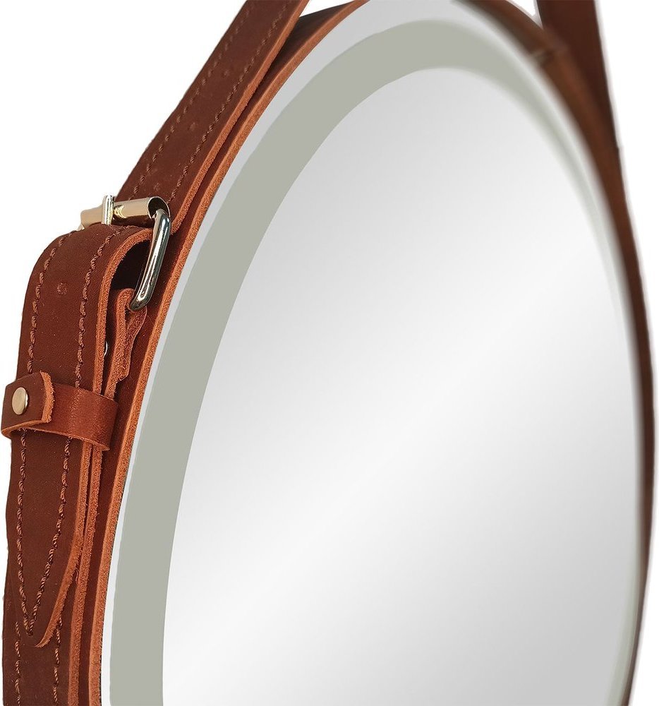 Зеркало Art&Max Milan Led 80 см AM-Mil-800-DS-F-Brown с подсветкой, диммером и сенсорным выключателем, ремень из натуральной кожи коричневого цвета.
