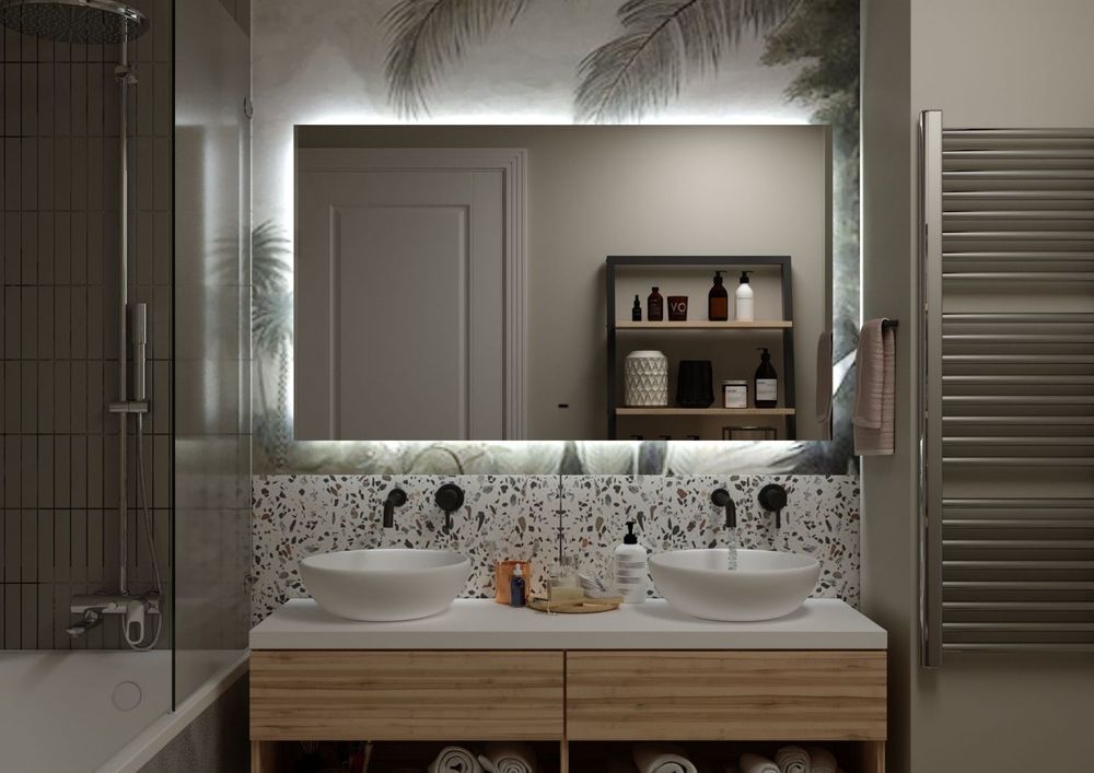 - Зеркало, оснащенное светодиодной LED подсветкой с диммером .