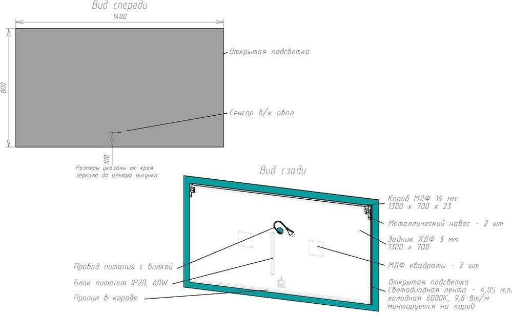 - Оснащение: зеркало, крепеж, коробка, инструкция.