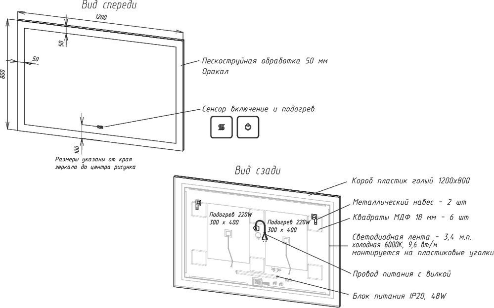 Описание зеркало Art&Max AM-Sol-1200-800-DS-F-H