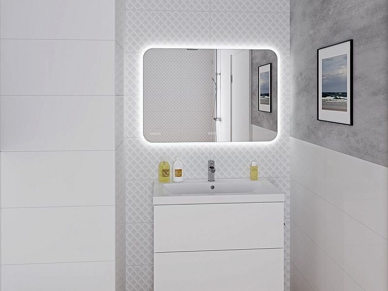 Зеркало Cersanit Design Pro 070 Led 100 см, с подсветкой, часами, функцией приема звонков, сенсорным выключателем и антизапотевателем.