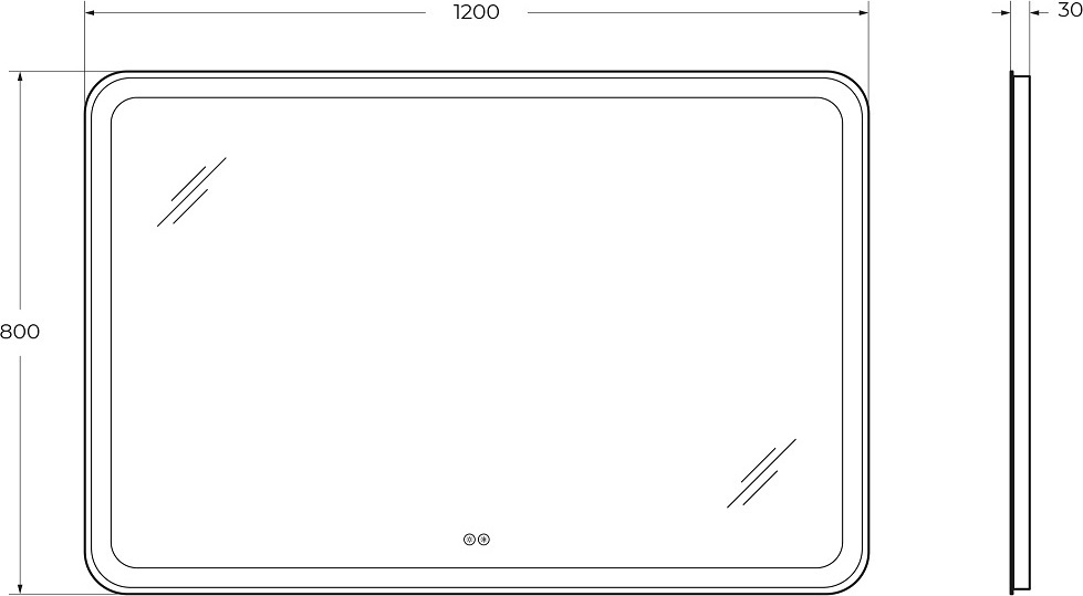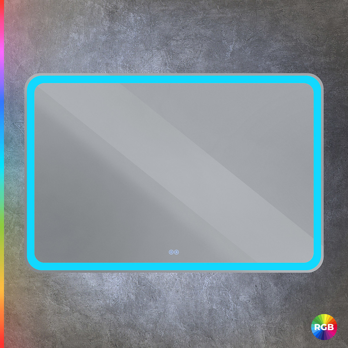 Зеркало со встроенной подсветкой, двойным сенсорным выключателем с диммером. Зеркальное полотно с пескоструйным рисунком по периметру, лента 5050, 12V 4200 К, холодный белый свет в режиме RGB - 16 млн цветов. Сенсоры включаются (белая подсветка) и выключается ( синяя подсветка) коротким нажатием(<1Сек) . Нажатием первого сенсора регулируется яркость подсветки, при нажатии второго сенсора меняется цвет подсветки. Длинным нажатием сенсора можно отключить подсветку кнопки. Зеркало имеет функцию памяти, запоминает яркость и цвет подсветки.