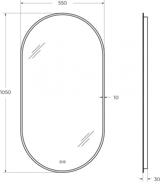 Зеркало со встроенной подсветкой, двойным сенсорным выключателем с диммером. Зеркальное полотно с пескоструйным рисунком по периметру, лента 5050, 12V 4200 К, холодный белый свет в режиме RGB - 16 млн цветов. Сенсоры включаются (белая подсветка) и выключается ( синяя подсветка) коротким нажатием(<1Сек) . Нажатием первого сенсора регулируется яркость подсветки, при нажатии второго сенсора меняется цвет подсветки. Длинным нажатием сенсора можно отключить подсветку кнопки. Зеркало имеет функцию памяти, запоминает яркость и цвет подсветки.