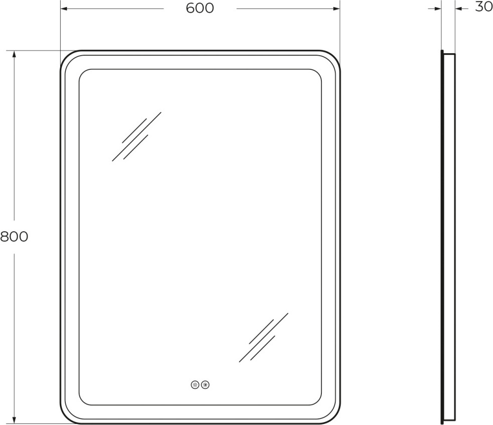 Зеркало со встроенной подсветкой, двойным сенсорным выключателем с диммером. Зеркальное полотно с пескоструйным рисунком по периметру, лента 5050, 12V 4200 К, холодный белый свет в режиме RGB - 16 млн цветов. Сенсоры включаются (белая подсветка) и выключается ( синяя подсветка) коротким нажатием(<1Сек) . Нажатием первого сенсора регулируется яркость подсветки, при нажатии второго сенсора меняется цвет подсветки. Длинным нажатием сенсора можно отключить подсветку кнопки. Зеркало имеет функцию памяти, запоминает яркость и цвет подсветки.