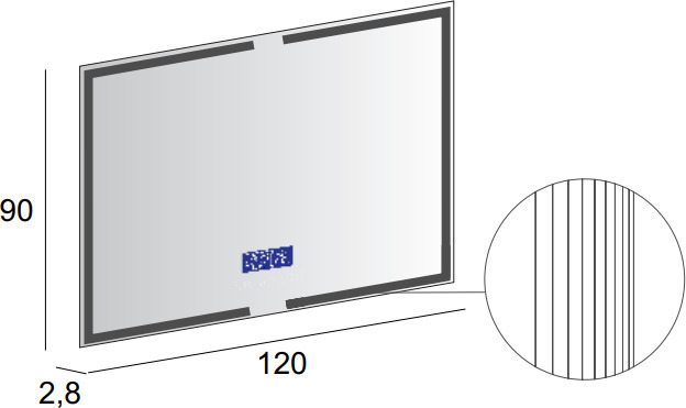 Зеркало Cezares 120 см 45064 с LED-подсветкой, К6500, сенсорным выключателем Touch System, системой антизапотевания, с радио и датчиком температуры.