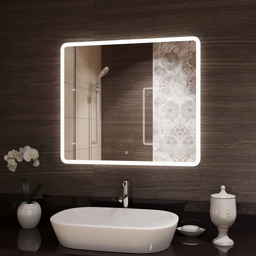 Зеркало с LED-подсветкой и сенсорным выключателем станет отличным украшением ванной комнаты, гостиной или спальни. Зеркало оснащено сенсорным выключателем с функцией плавного диммирования с запоминанием последнего значения. Короткое касание включает/выключает подсветку, длительное касание меняет яркость свечения.
