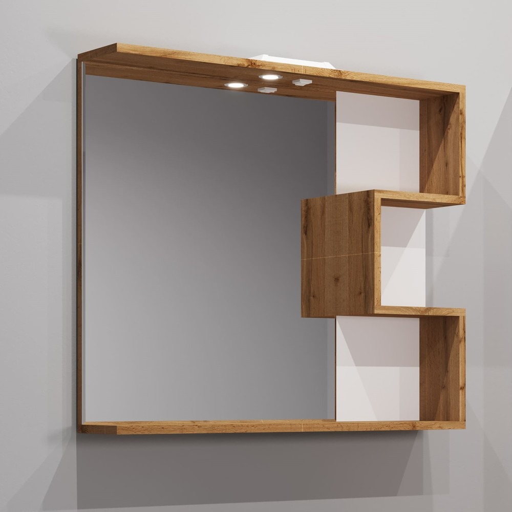 Зеркало EvaGold Forest 80 см EG010446, белый/дуб вотан