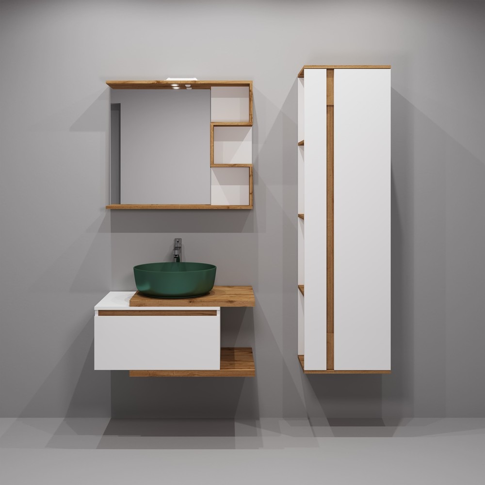 Зеркало EvaGold Forest 80 см EG010446, цвет - белый/дуб вотан.