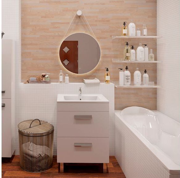 Зеркало Gair Etna White 60 см, на ремне, светодиодная подсветка, диммер цветовой температуры, сенсорное включение.