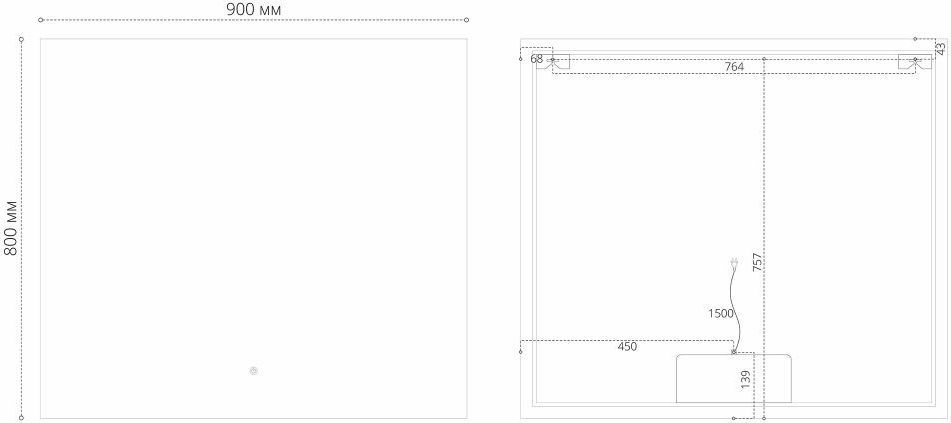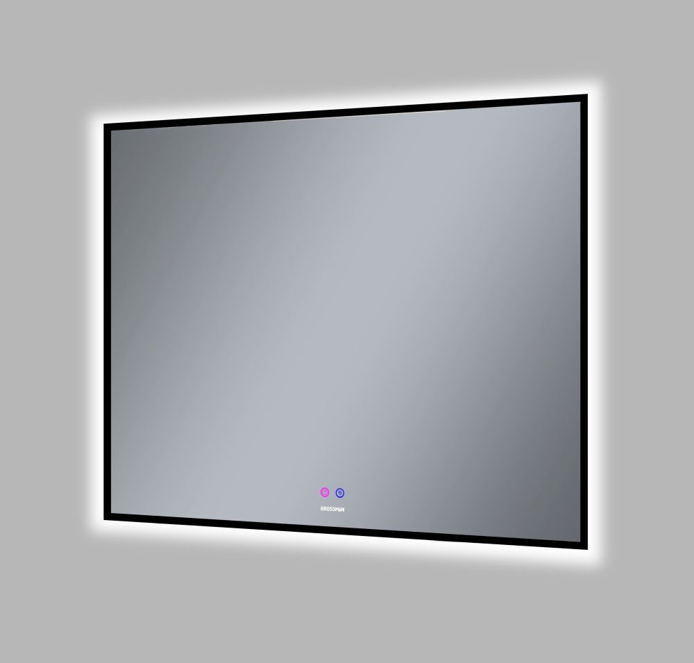 Зеркало Grossman Pragma-норма Black 90 см 1890802 с Led-подсветкой, подогревом и сенсорным выключателем, цвет черный.