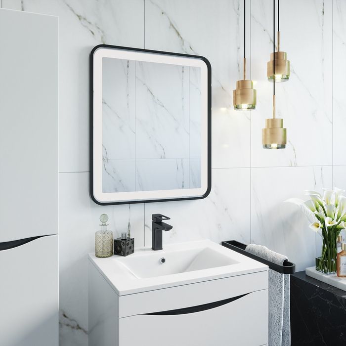 Зеркало Iddis Cloud Led 80 см CLO8000i98 с подсветкой, термообогревом, диммером и сенсорным выключателем, цвет черный матовый.