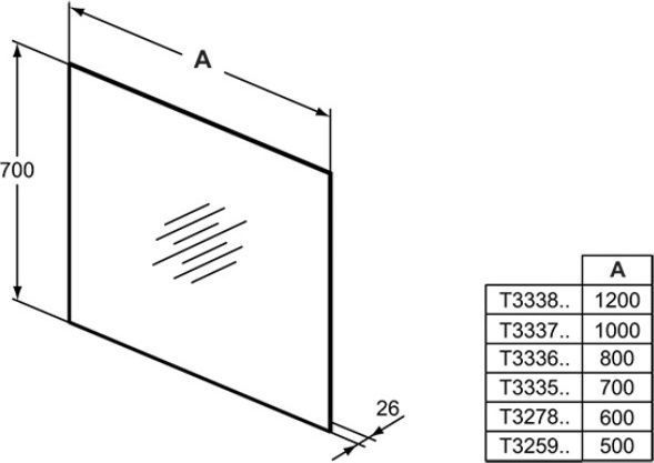 Зеркало Ideal Standard Mirror&Light 80 см T3336BH, реверсивная версия, 4-сторонняя светодиодная подсветка, система антизапотевания, без выключателя, с крепежом, 220-240 V, 50-60 Hz, IP44, Class II.