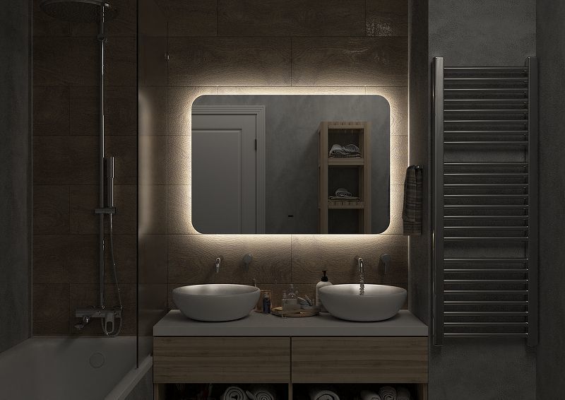 Это настенное зеркало нового поколения, изготовленное из полотна толщиной 4 мм от ведущего европейского производителя AGC. При изготовлении используется светодиодная лента с плотностью диодов 120 шт/м и мощностью 9,6 Вт/м, обеспечивающая яркое и равномерное свечение.