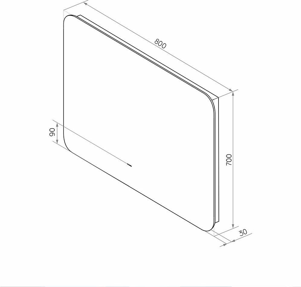 • Это прямоугольное зеркало для ванной шириной 80 см, высотой 70 см