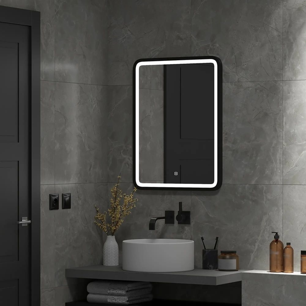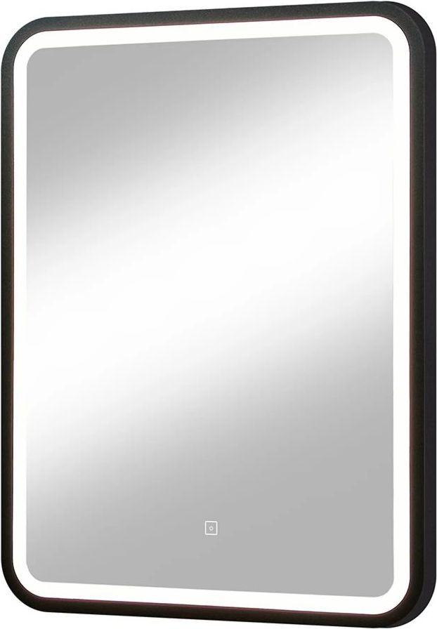 Зеркало Континент Enjoy Black Led 60 см ЗЛП1100, открытая ореольная подсветка 6000К, сенсорный выключатель с функцией диммирования, рама МДФ черного цвета.