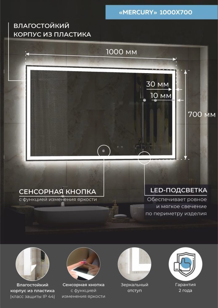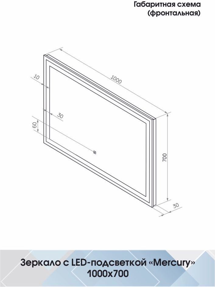 Зеркало Континент Mercury Led 100 см ЗЛП624, подсветка 6000К, сенсорный выключатель с функцией диммирования.