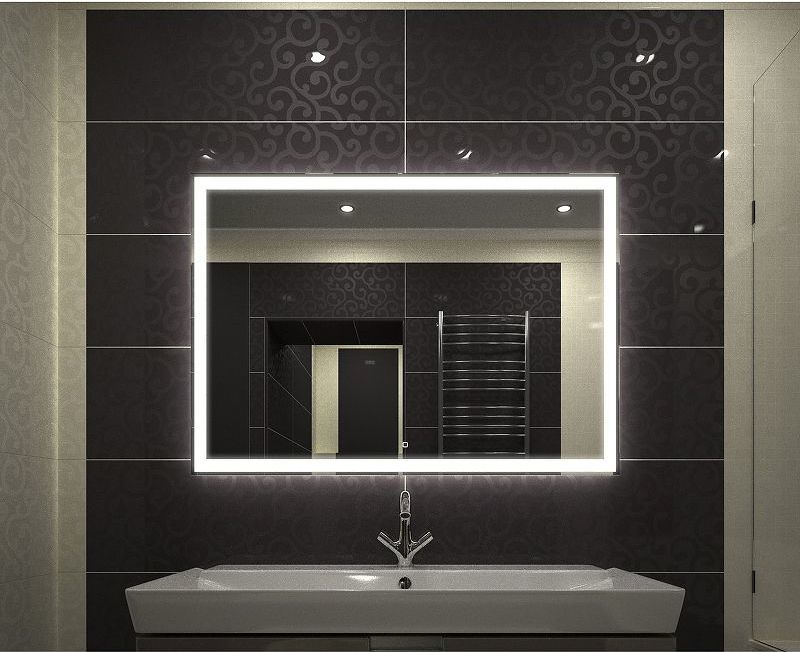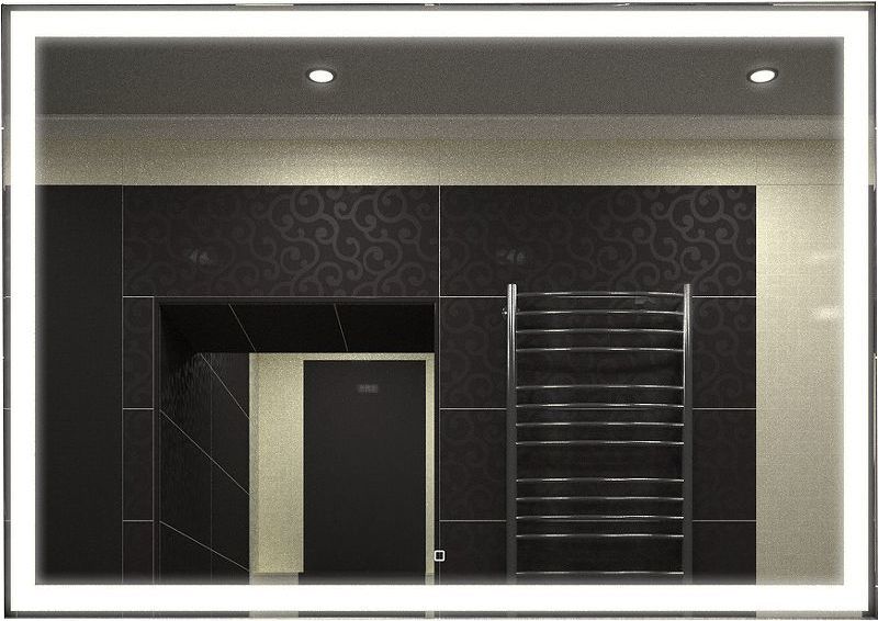 При изготовлении используется светодиодная лента с плотностью диодов 120 шт./м и мощностью 9,6Вт/м, что создает мягкое и равномерное свечение по периметру зеркала. Электрические компоненты размещены внутри корпуса из высококачественного УПС-пластика. Край полотна обработан еврокромкой, что обеспечит безопасный контакт с краями изделия.