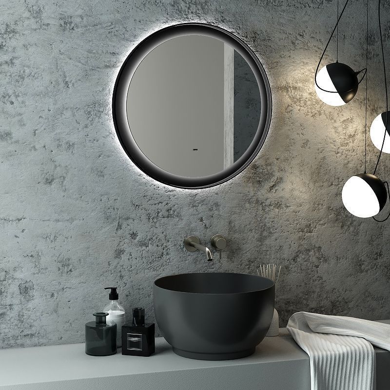 Зеркало Континент Planet Black Led 80 см ЗЛП684, подсветка 6000К, бесконтактный сенсор с функцией диммирования, рама - МДФ короб в черной пленке Soft touch.