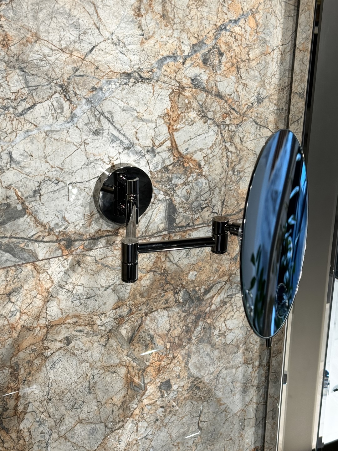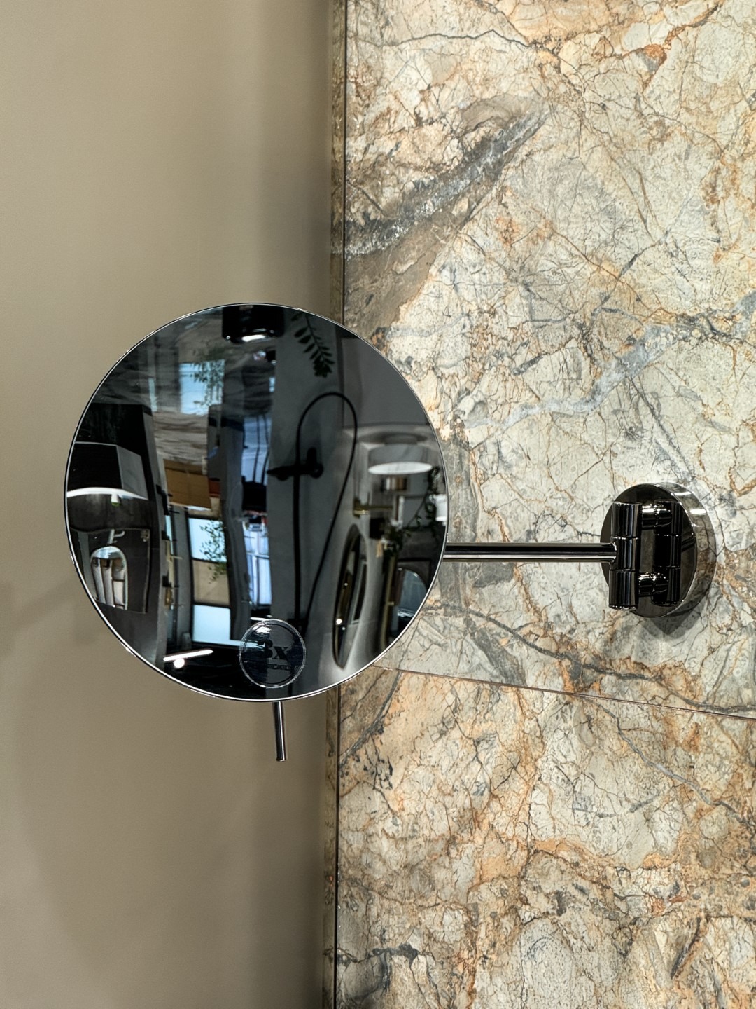 Настенное зеркало Boheme в круглом исполнении. С трехкратным увеличением. Минималистичный ультратонкий дизайн. Корпус выполнен из латуни, угол поворота регулируется.