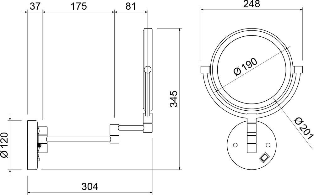 Зеркало Saona 13376 предназначено для использования в ванной комнате. Главное назначение зеркала - помощь в проведении косметических процедур. Функция 5-х кратного увеличения поможет рассмотреть отдельные участки лица. Диаметр зеркала 200мм. Подсветка зеркала работает от сети 220Вт.