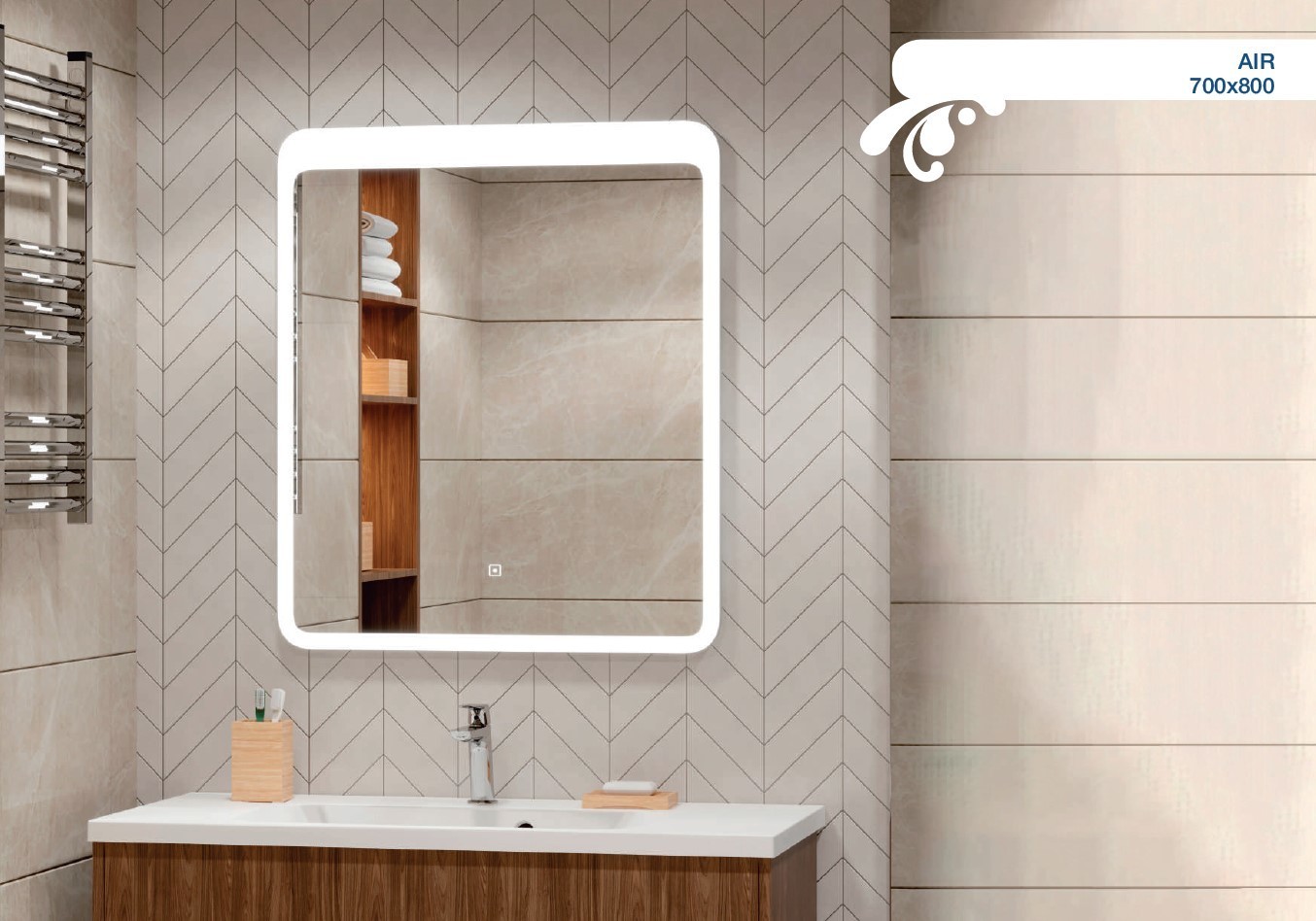 - Зеркало AIR изготовлено из зеркального полотна толщиной 4 мм от ведущего европейского производителя зеркал AGC.