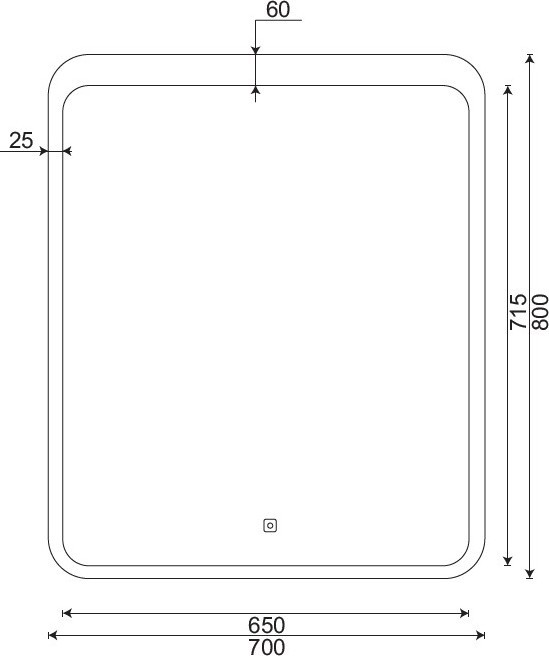 - Яркость подсветки регулируется с помощью сенсорной кнопки, удобно расположенной в нижней части зеркала.