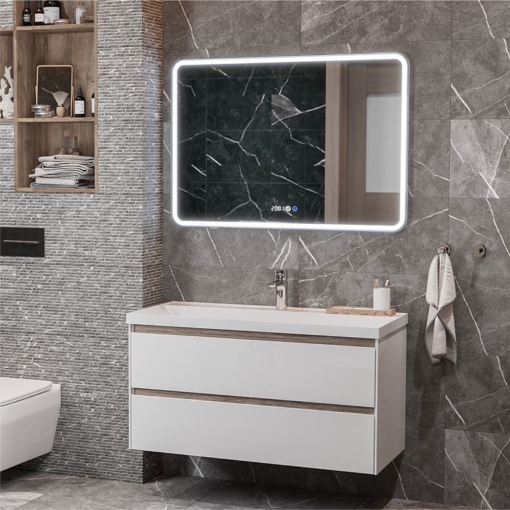 Зеркало Mirsant Harmony 100 см c подсветкой, сенсорным выключателем, подогревом и часами.