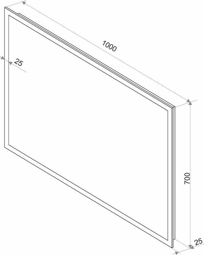 Зеркало с внутренней LED подсветкой, прямоугольное, сенсорное, с пескоструйной обработкой, изготовлено из влагостойкого зеркального полотна толщиной 4 мм производства AGC GLASS EUROPE. Корпус изготовлен из высокопрочного пластика АБС. Источник света скрыт за зеркальной поверхностью, световое зеркало представляет собой идеальное сочетание стеклянной поверхности и глубокой игры света. Край полотна обработан для защиты от порезов при контакте. Питание от сети 220В, сенсорный выключатель, температура свечения LED - 6000К, светодиоды - 2835 (120), 220 V / 50 Hz. Управление подсветкой осуществляется сенсорным выключателем. Срок службы диодов - 30000 часов. LED подсветка зеркала имеет нейтральный оттенок белого свечения. Изделие прошло обязательную сертификацию и может использоваться в помещениях с повышенной влажностью воздуха. В комплект поставки входит крепеж. Габаритные размеры: высота 700 мм, ширина 1000 мм. Вес - 9,700 кг, объём - 0,03937 м3.