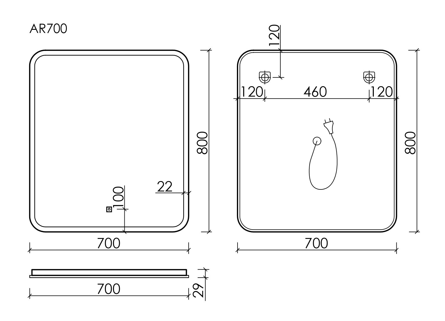 Зеркало Sancos Arcadia 70х80 см AR700 с LED подсветкой, сенсорным выключателем и диммером.