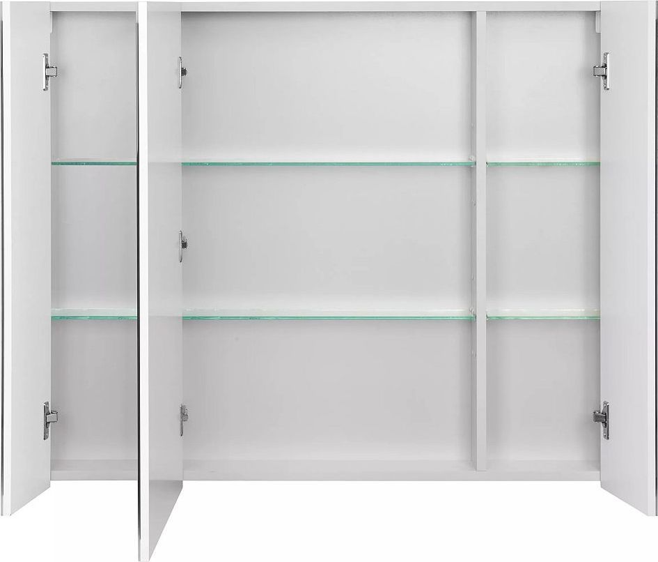 - Три распашных фасада скрывают регулируемые стеклянные полочки на специальных фиксаторах, предотвращающих случайное опрокидывание