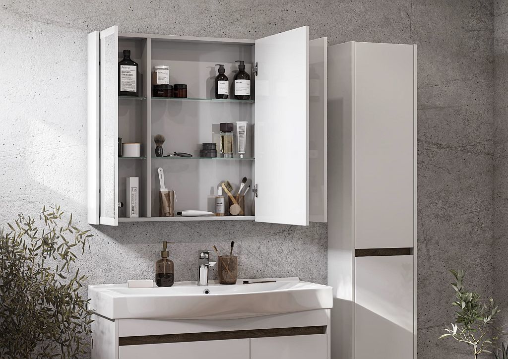 Зеркало-шкаф Акватон Нортон 100 см 1A249302NT010, цвет - белый глянцевый.