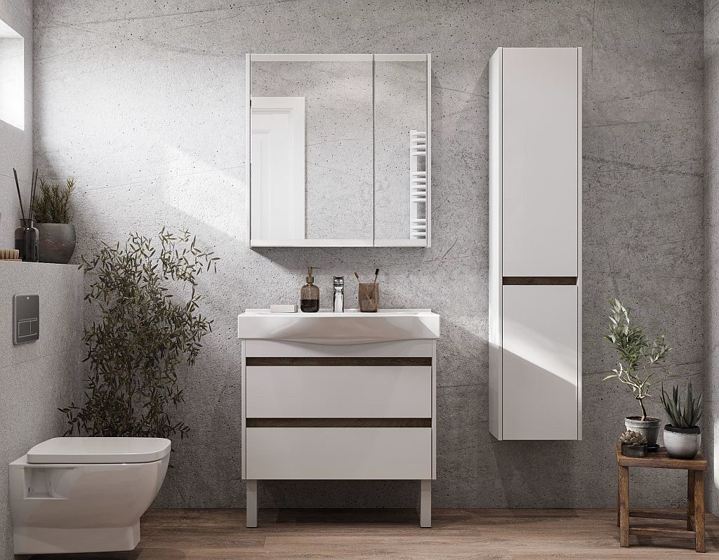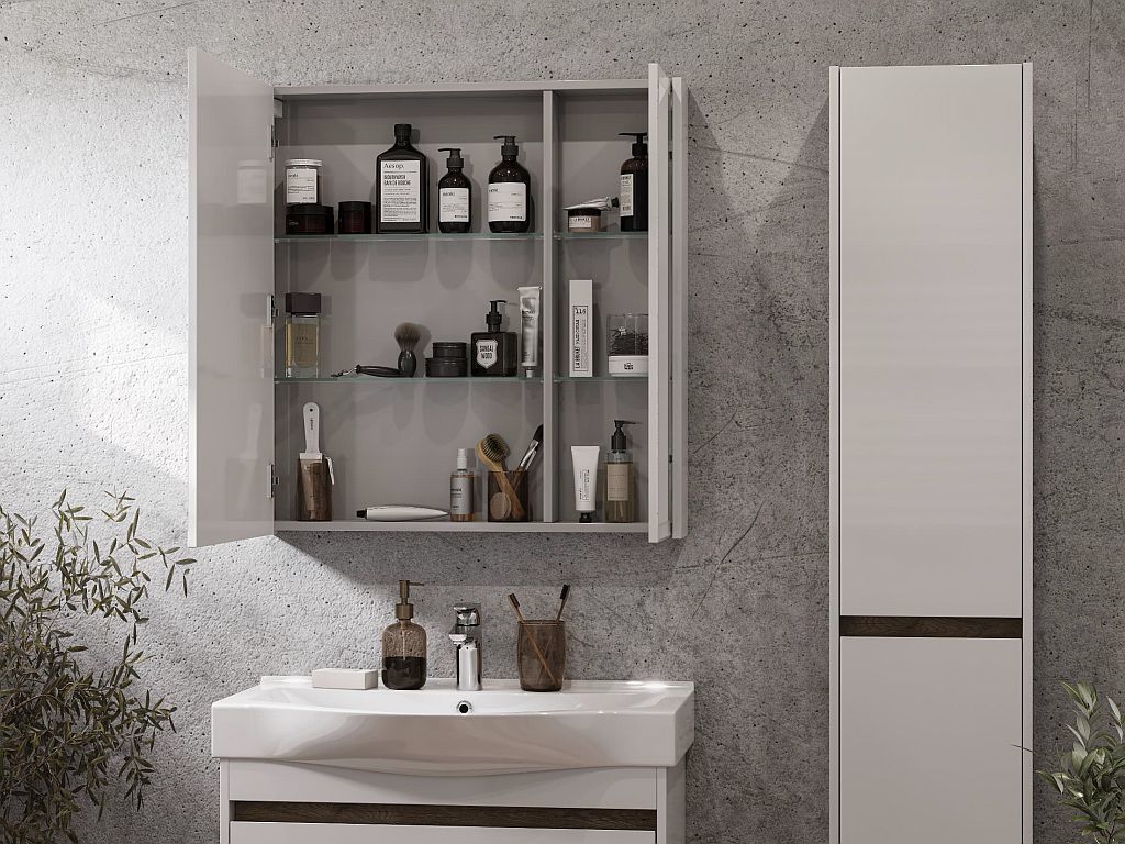 Зеркало-шкаф Акватон Нортон 80 см 1A249202NT010, цвет - белый глянцевый.