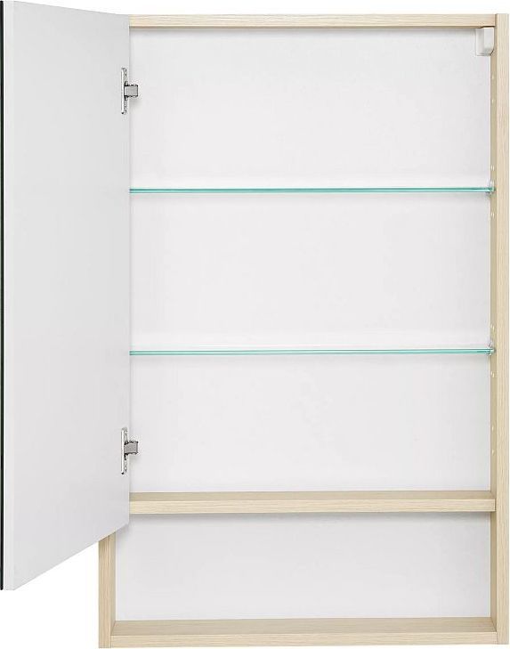 Зеркало-шкаф Акватон Сканди 55 см 1A252102SDB20, 2 петли с плавным доводом, 2 регулируемые стеклянные полки, цвет - белый глянцевый/дуб верона.